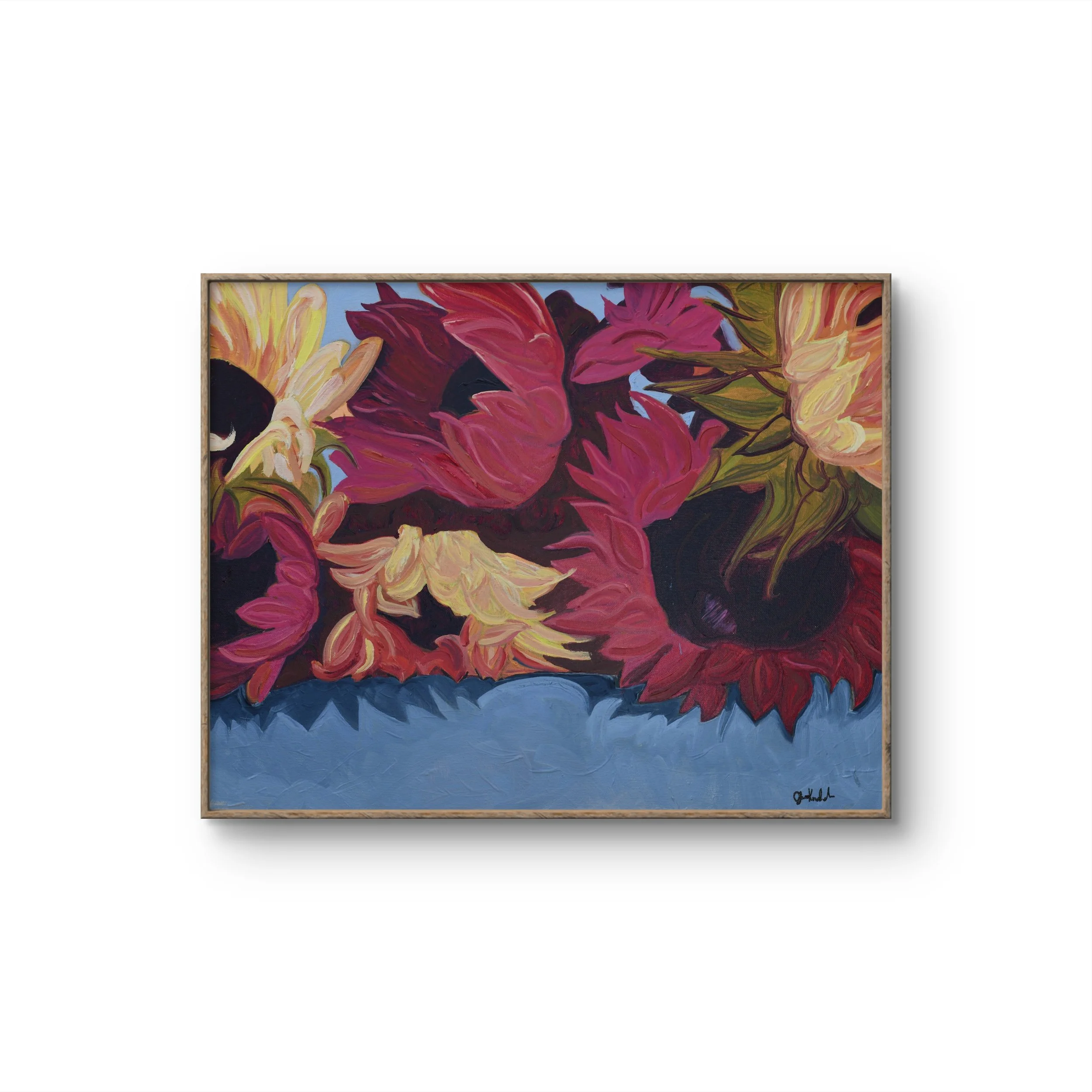 Each piece captures the quiet energy of petals in motion, using a restrained color palette to create bold, expressive movement.