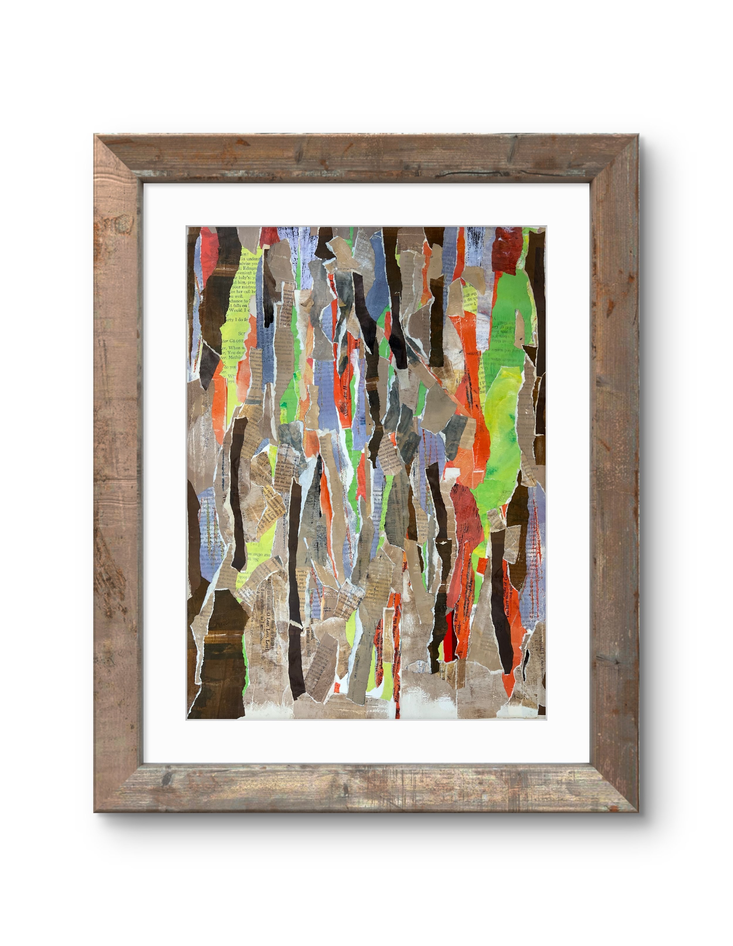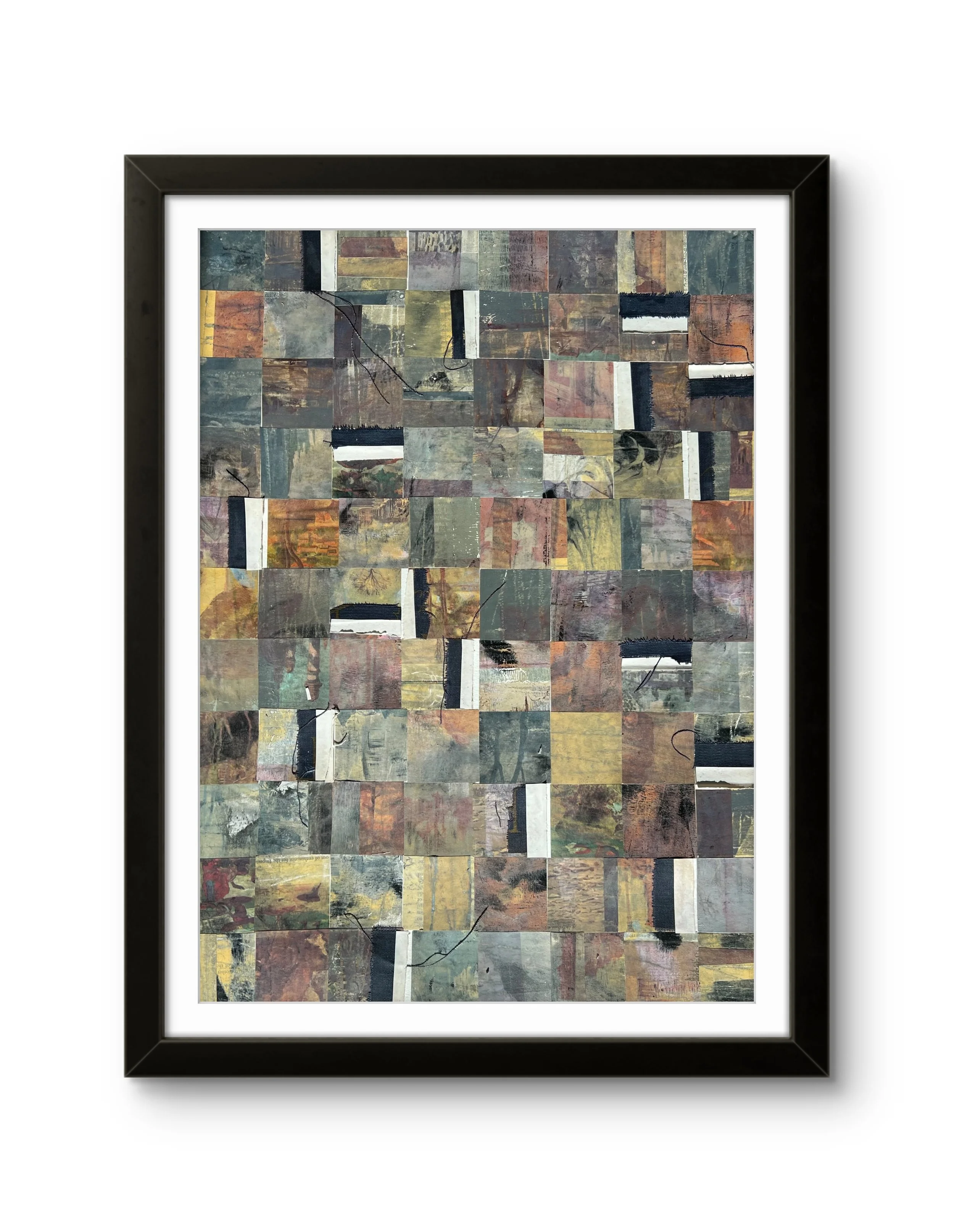 In this collection, Jhen explores rhythm and movement through abstracted forms, inspired by nature. Created using acrylics on vintage papers, each work is built in layers,